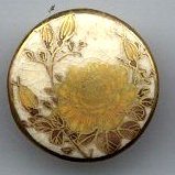 Chrysanthemums yellow and gold Satsuma partially rounded shank tiny chip on shank 15/16 dia