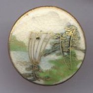 Marine Scene oriental sail boat in the water with trees Satsuma 3/4"Dia flat unglaze shank