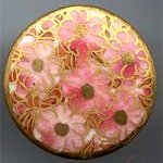 Pink and gold flowers lots of color and gold with gold border 15/16 Dia modern